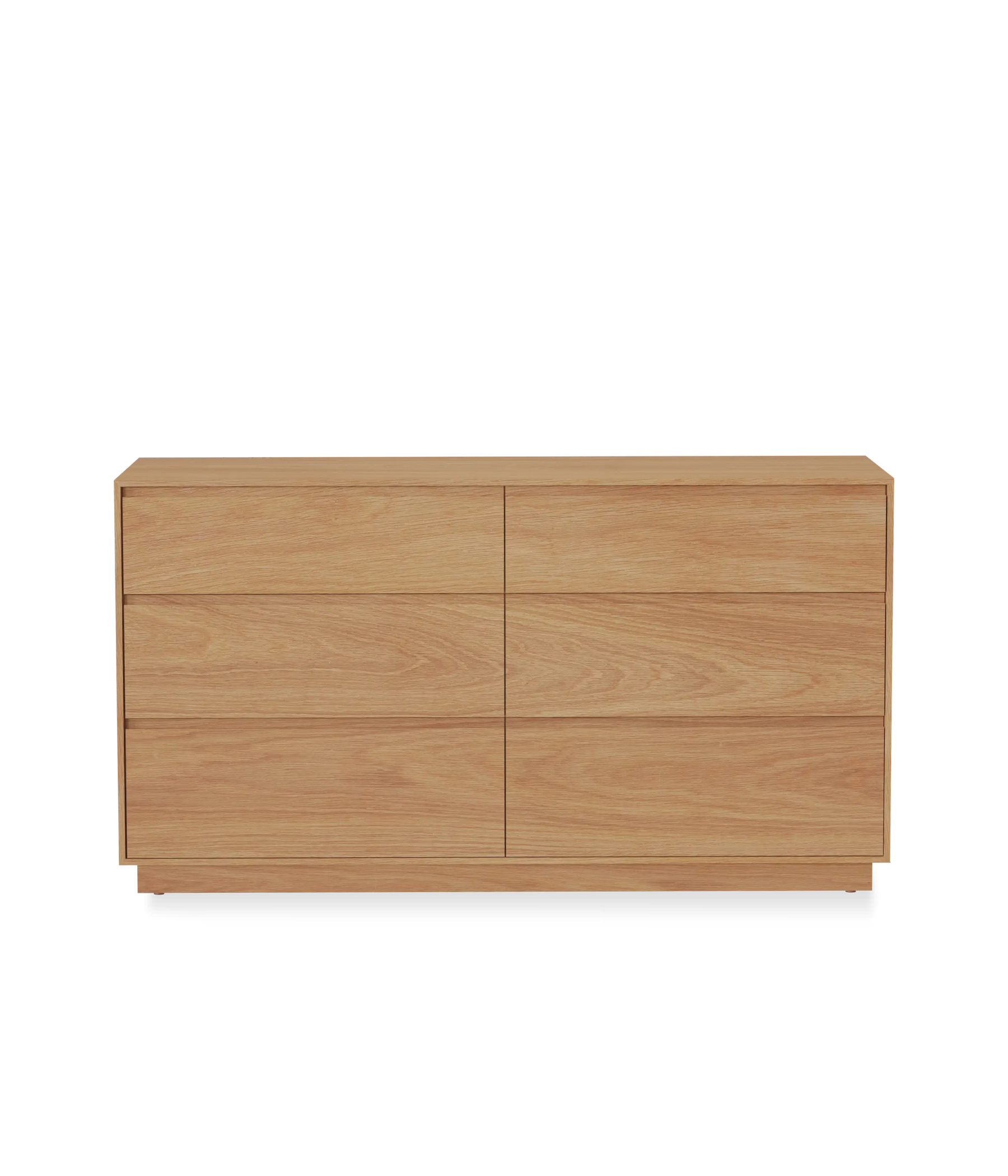 This dresser features continuous grain across both columns of drawers, highlighting the beauty of the natural hardwood. Drawers are constructed with dovetail joinery, and placed on under mount, soft close slides.