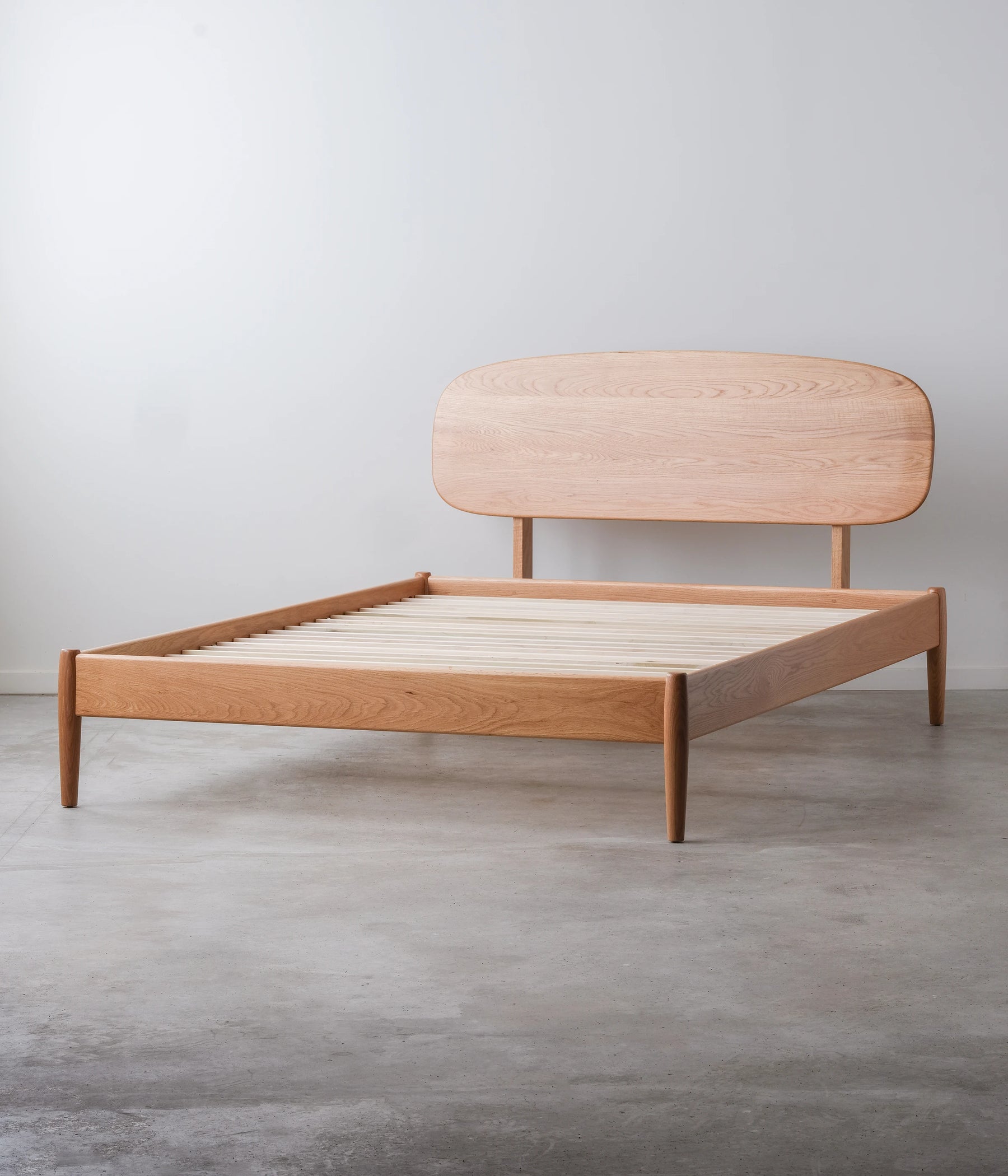 Designed to soften your bedroom's aesthetic, the Louise Bed features subtly sloped edges and a slanted headboard. Its simple, organic silhouette creates the perfect backdrop for lingering in the morning with your favorite book.