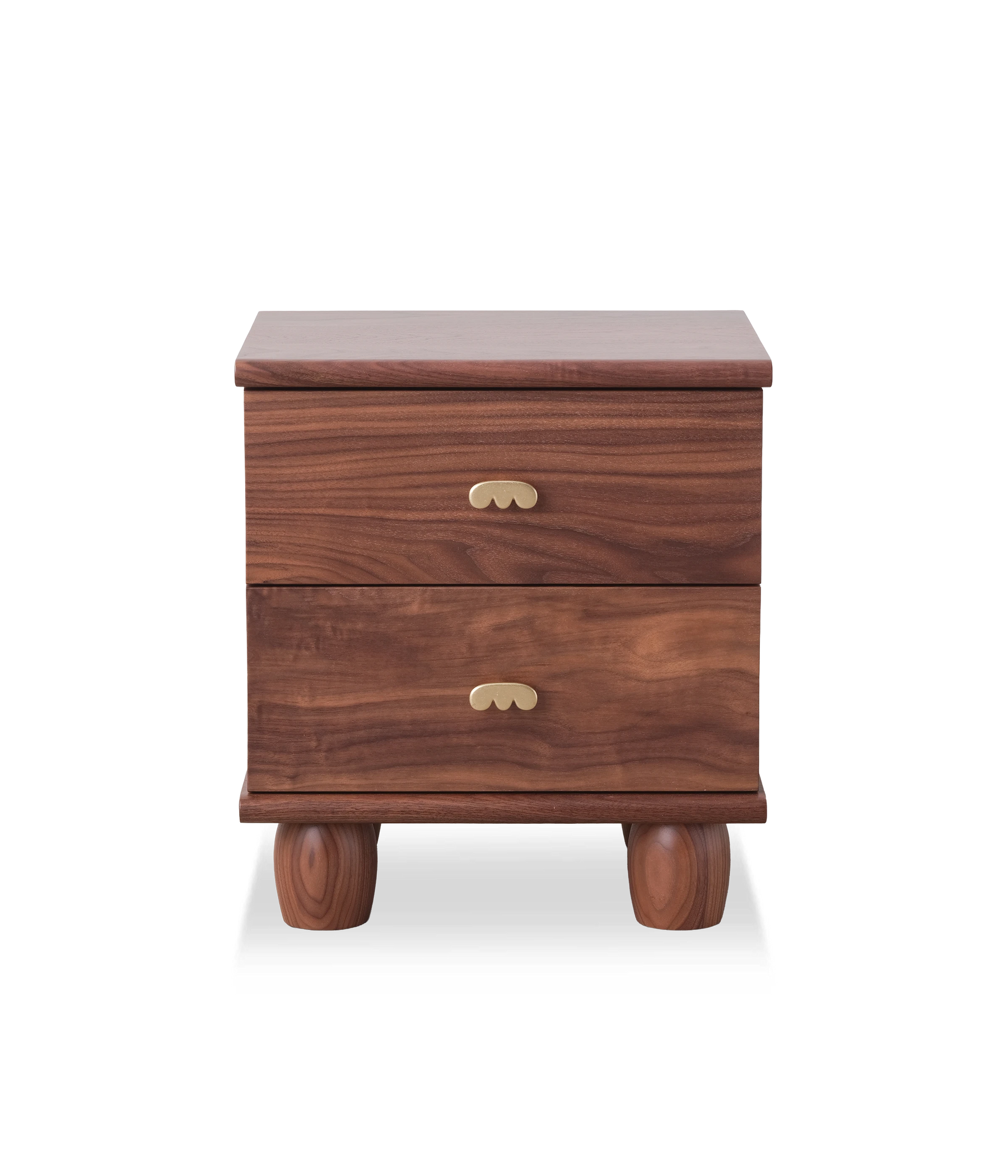 The Marie nightstand is a playful option for maximizing storage space. Our Marie pulls are solid brass with a satin finish and fabricated in Chicago. Drawers have soft close slides.