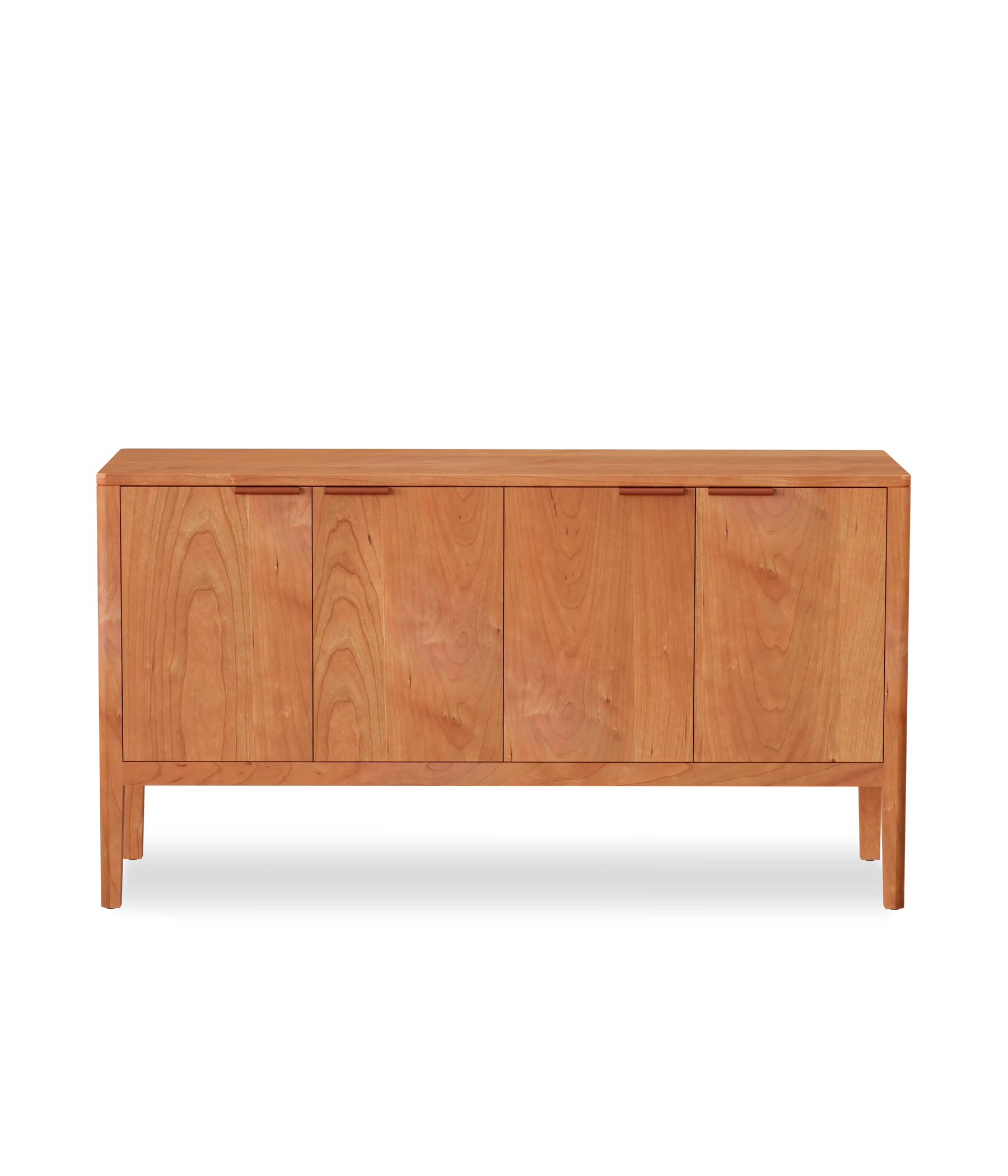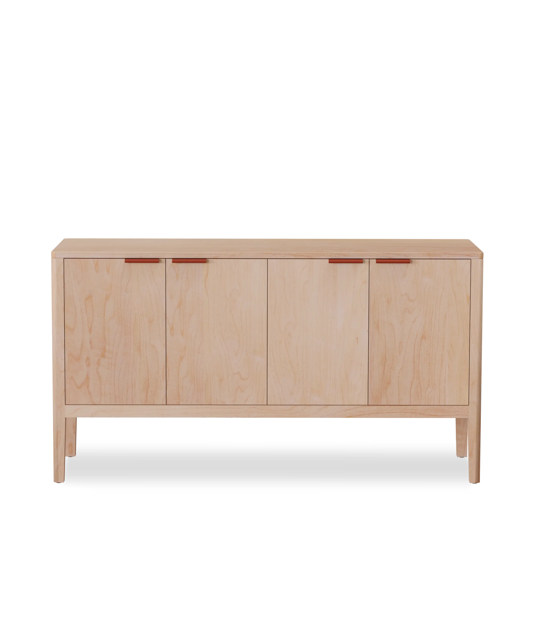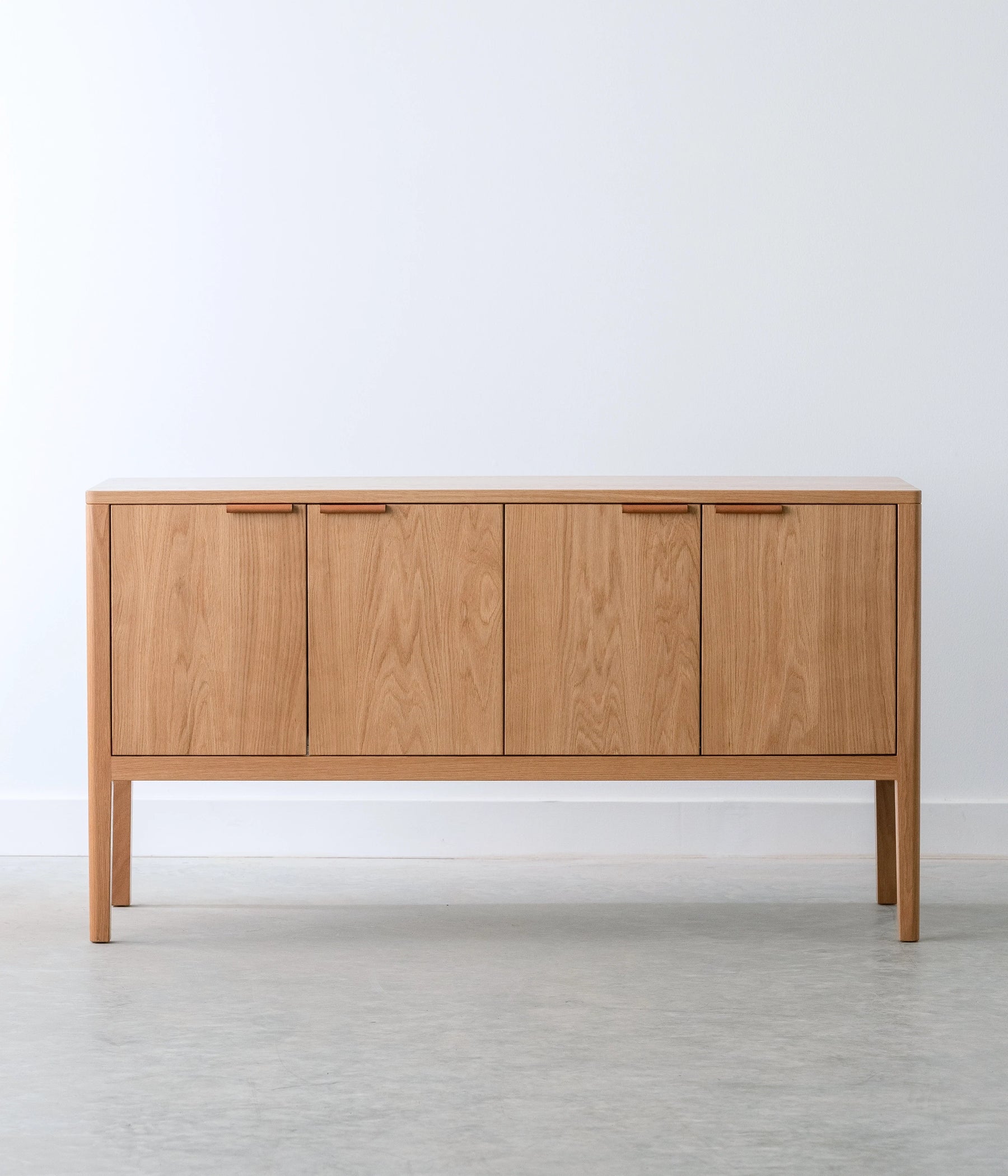 The Avers media cabinet features vertical grain doors. It's petite size lends itself to smaller spaces, but can also double as a credenza in the dining room. Custom leather pulls, designed and made in Chicago. Two adjustable shelves and cord cutouts for your media organization needs. Doors have soft close hinges.