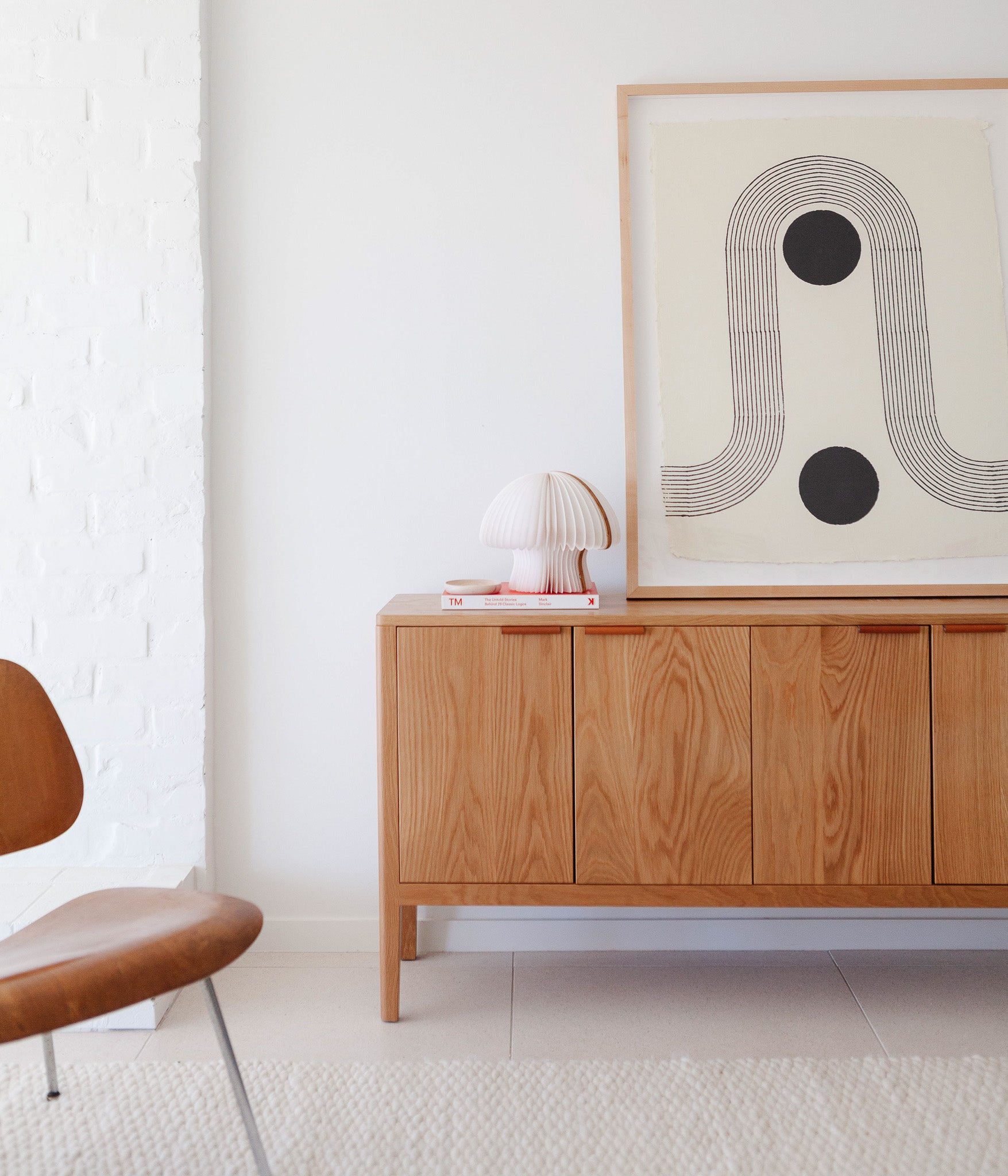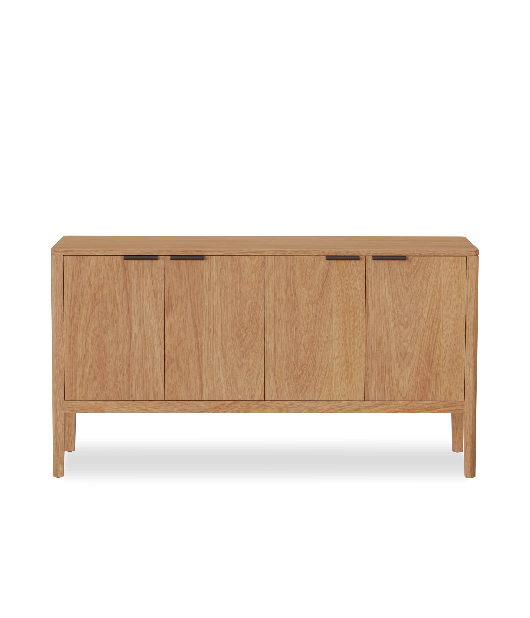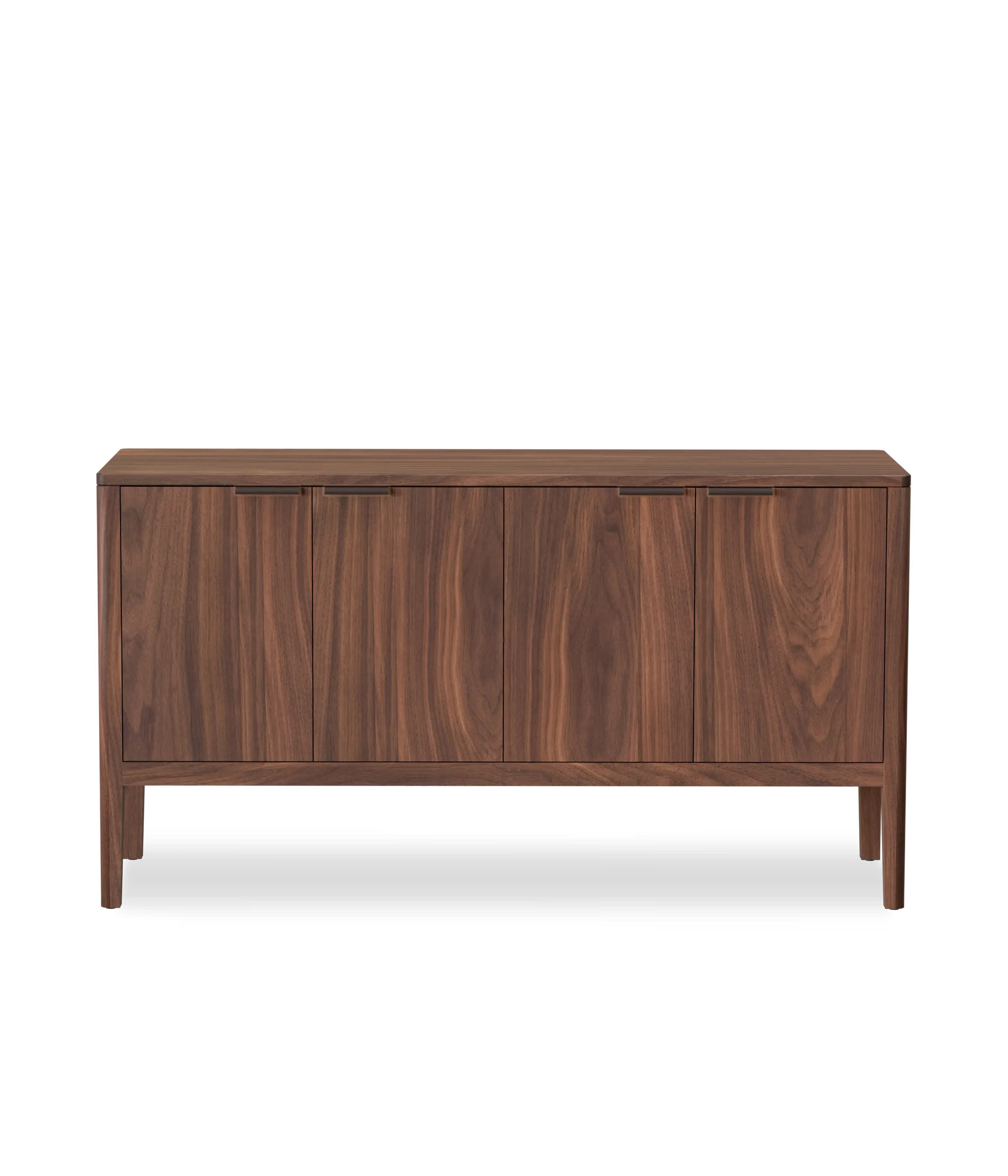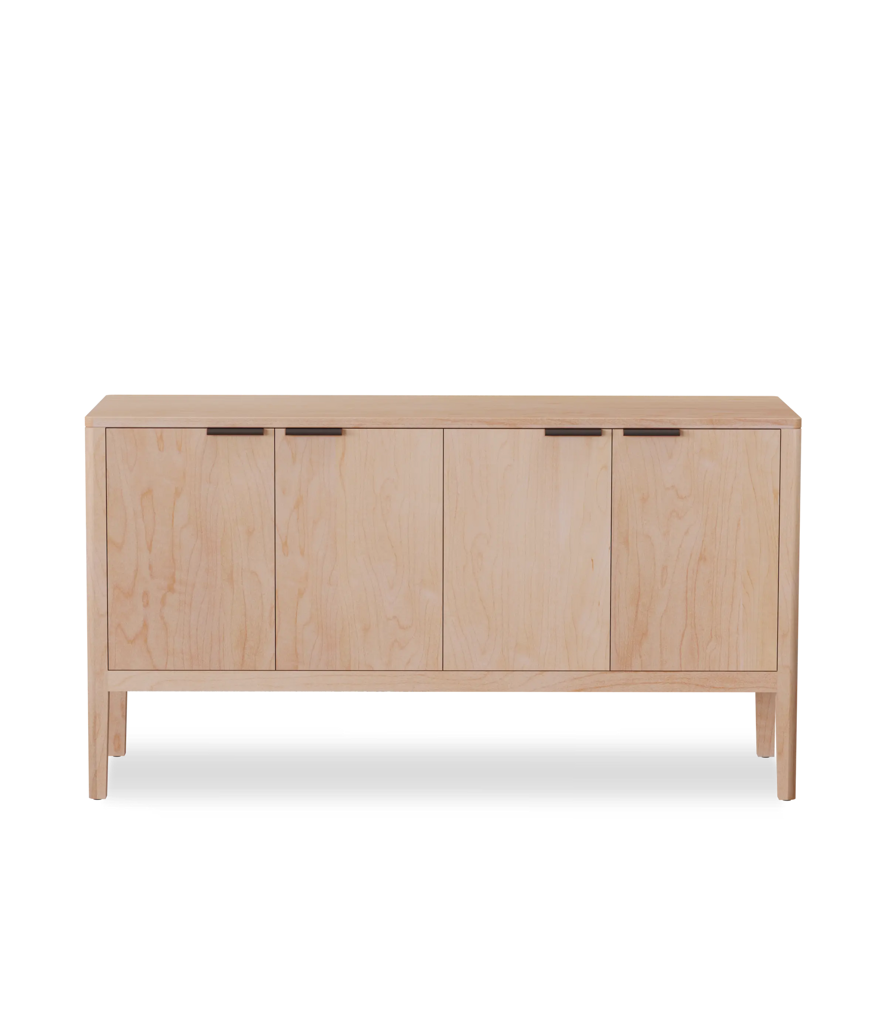 The Avers media cabinet features vertical grain doors. It's petite size lends itself to smaller spaces, but can also double as a credenza in the dining room. Custom leather pulls, designed and made in Chicago. Two adjustable shelves and cord cutouts for your media organization needs. Doors have soft close hinges.