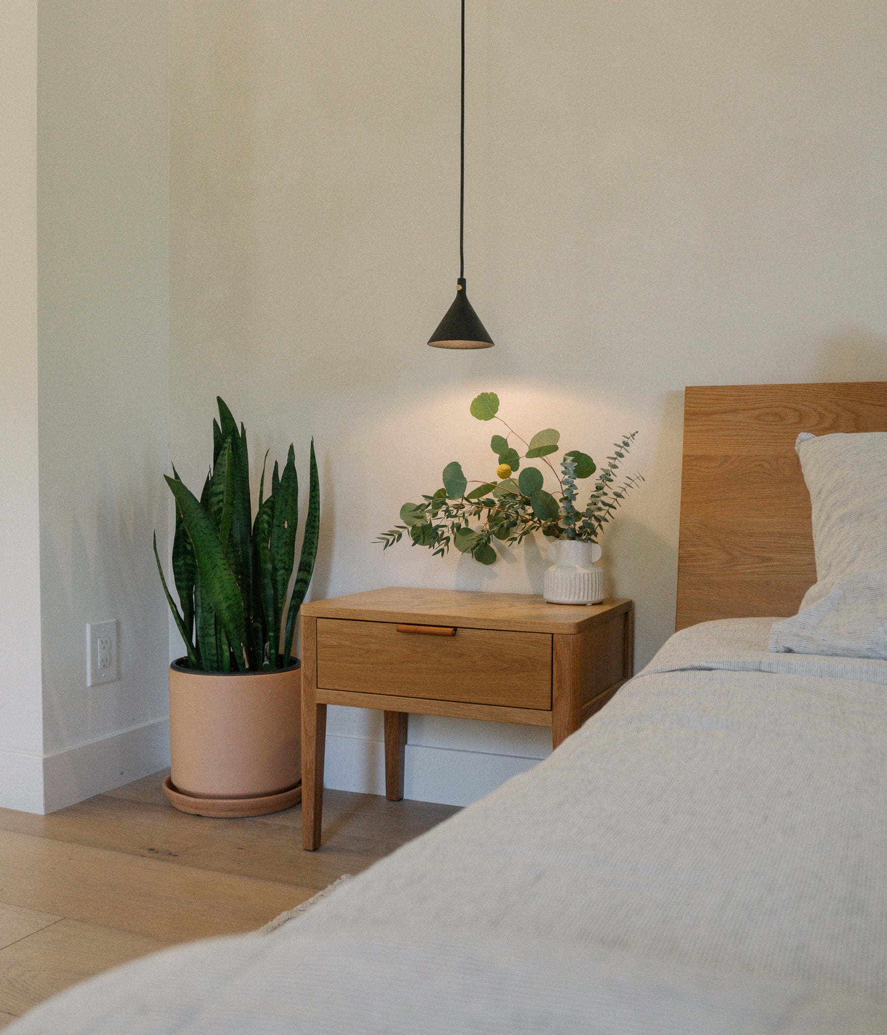 The Avers side table is a functional addition to any room. One dovetail drawer box with soft-close, under mount drawer slides. The custom leather pulls are designed and made in Chicago.