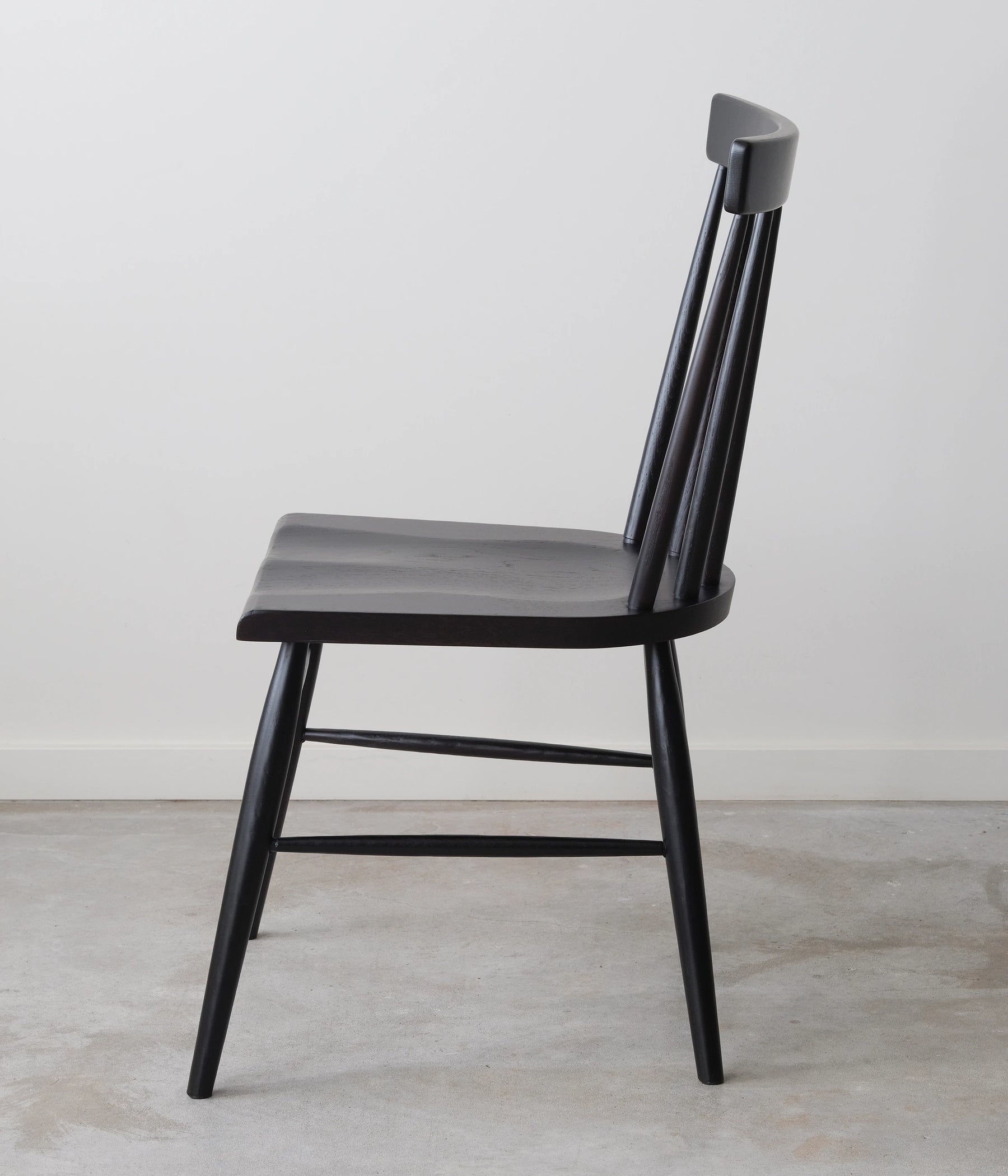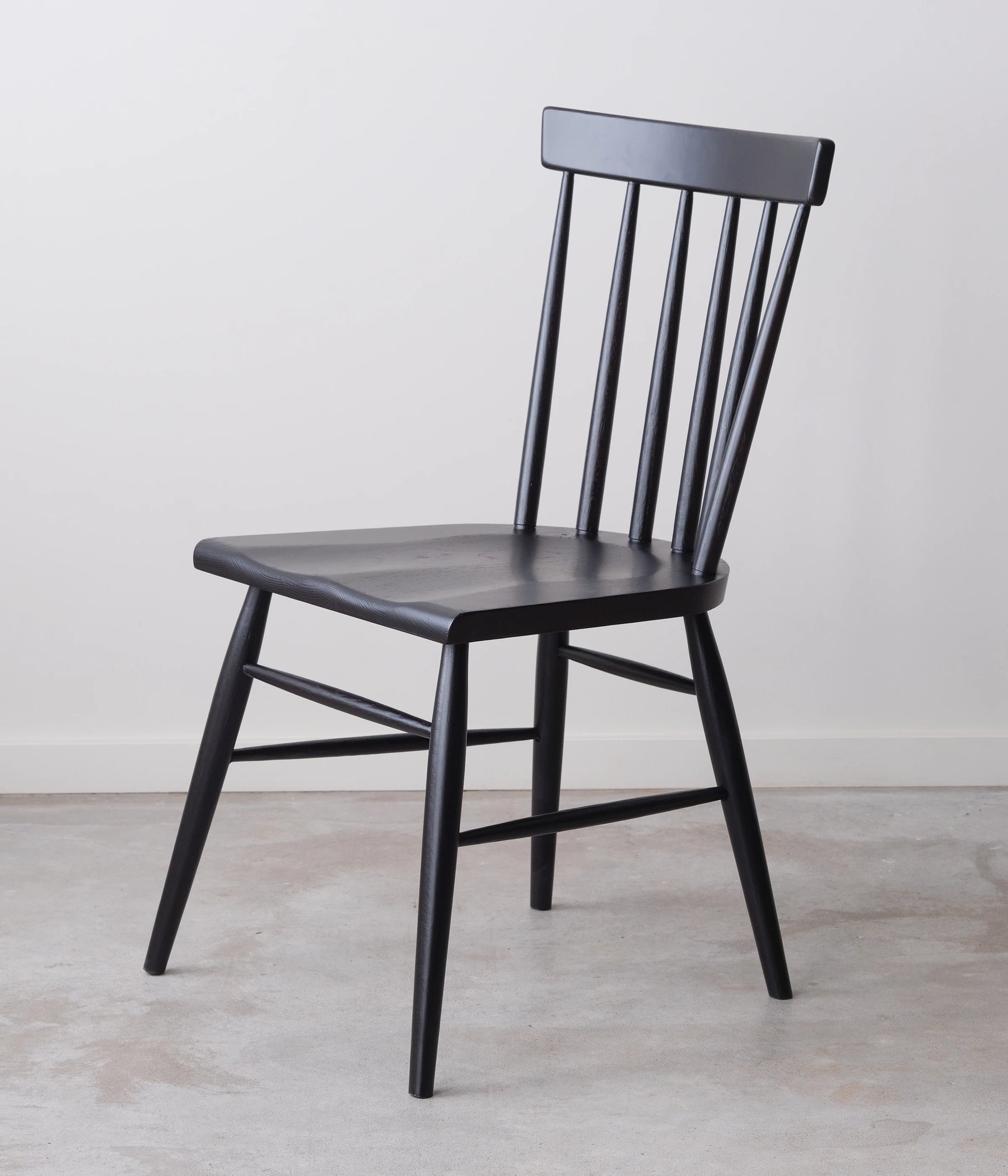 Our take on the classic Windsor Chair. Made from white oak, with a black charcoal dye. Also available in walnut, cherry, maple, and white oak.